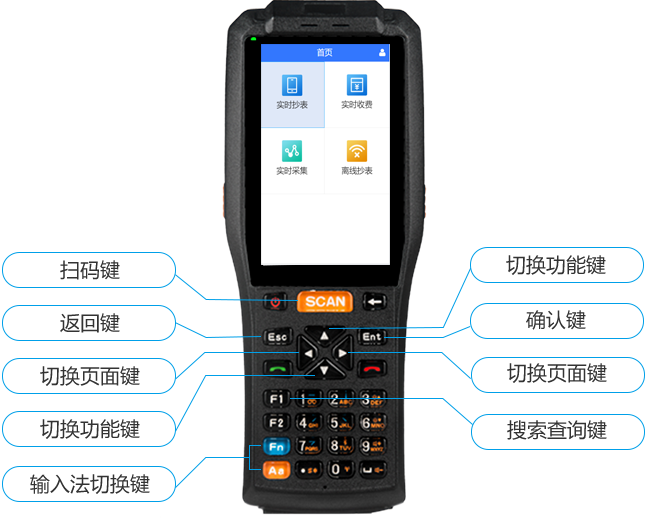集3G/4G全网通、红外扫码、NFC感应、小票打印、GPS定位、拍照于一体的工业级安卓多功能手持抄表机,坚固防爆设计、稳定可靠耐用。